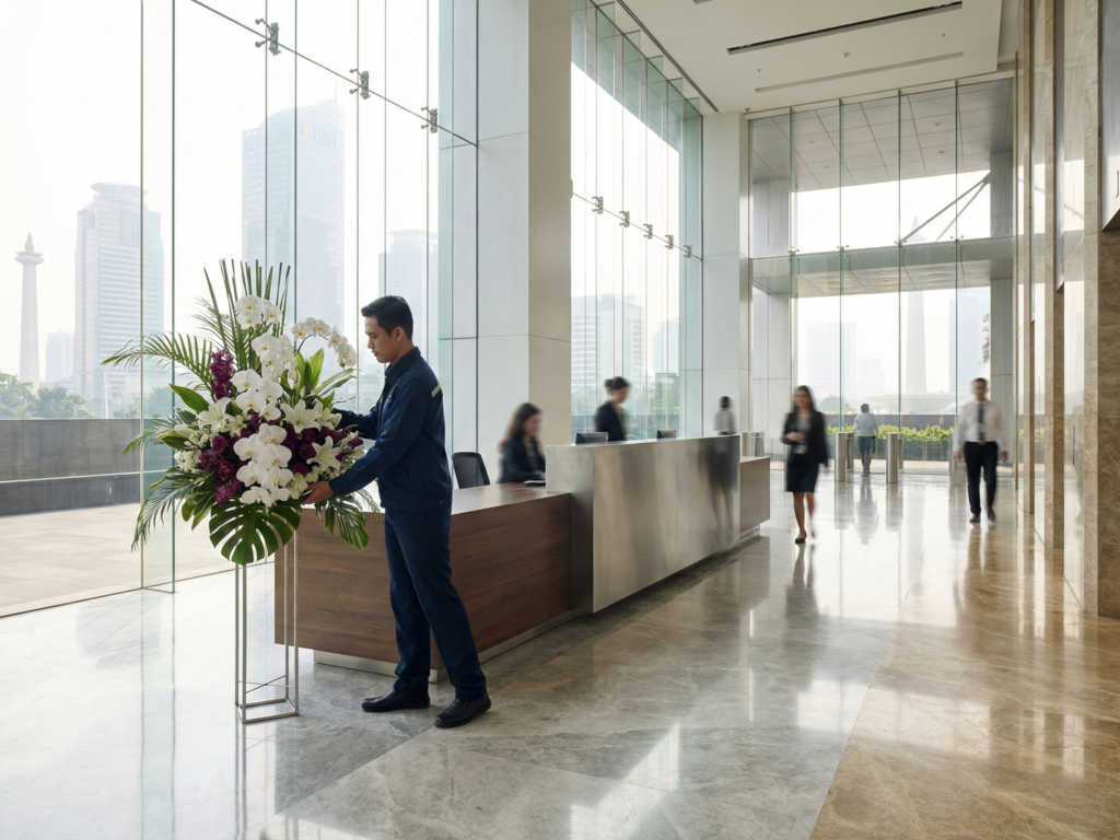 Kebutuhan bunga untuk relasi bisnis di Thamrin & Sudirman tidak boleh sembarangan. Kami menyediakan Bunga Papan dan Standing Flower dengan desain elegan, formal, dan rapi. Jaminan pengiriman tepat waktu untuk Grand Opening atau ucapan selamat, lengkap dengan layanan prioritas untuk kebutuhan korporat Anda.